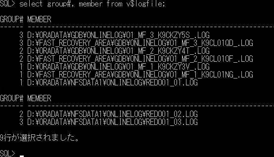SQL> alter database add logfile member 'd:\oradata\nfsdata1\onlinelog\redo01_03.log' to group 3;