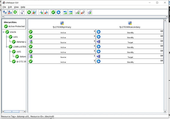 プライマリサーバーでは増設ディスク/dev/xvdb1をディレクトリ /u01にmountし、/u01にOracle Databaseをインストールしています。Oracle Databaseのインストール、リスナーの設定、Databaseの作成などのOracleのセットアップの詳細につきましては、Oracle社の公式マニュアル等をご参照ください。また、 LifeKeeperのドキュメントでご紹介しているケースがありますので、必要に応じてご参照ください。
