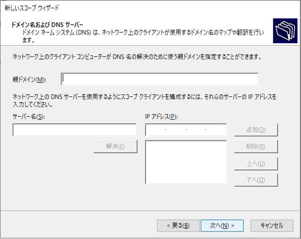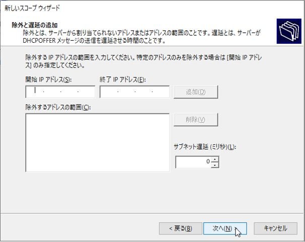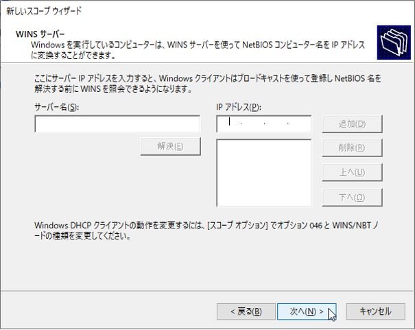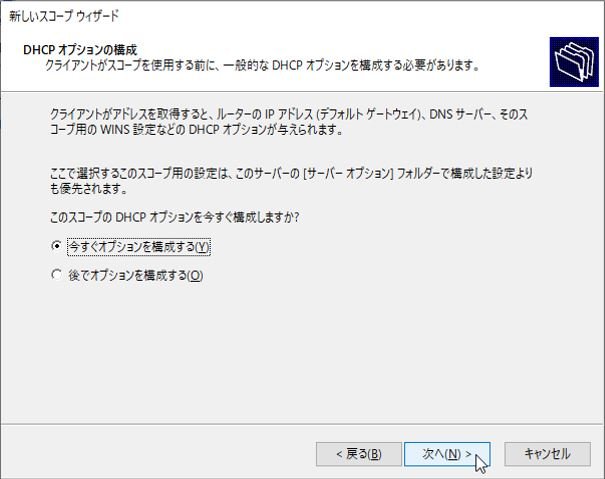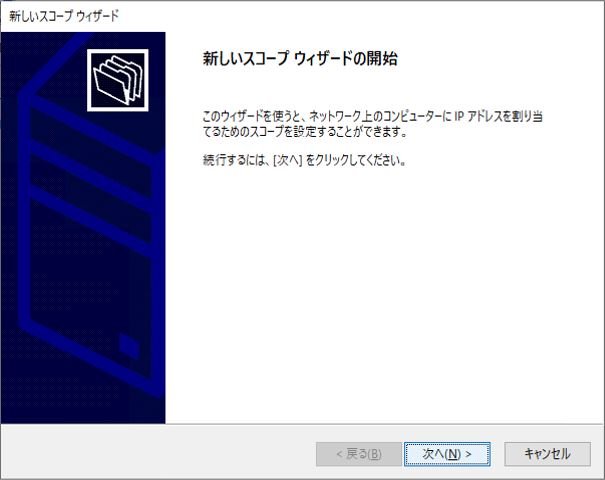 「サーバーマネージャー」の「管理」からDHCPサーバーの役割・機能を追加します。 追加手順はここでは省略します。