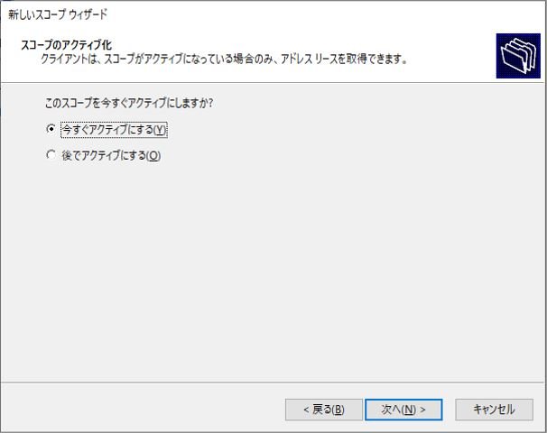 IPアドレスが割り当てられるように「今すぐアクティブにする」を選択します。