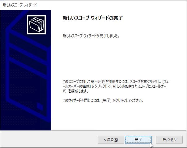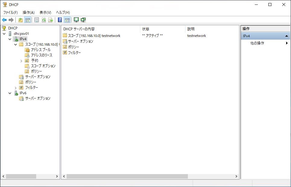 サーバー作成が完了すると、DHCPサーバーのスコープからIPアドレスが自動で割り当てられました。