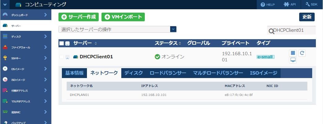 2020年9月10日の機能エンハンスにて、プライベートLAN内に限り、ニフクラサーバーをDHCPサーバーとして利用することが可能になりました。