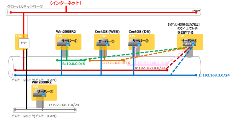 | セグメントE | 192.168.3.0/24 | 共通セグメント |