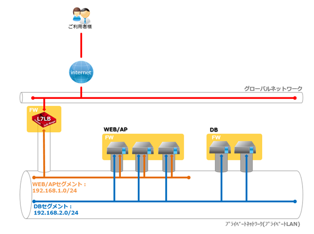 - WEB/APサーバーからDBサーバーへは「192.168.2.0/24」のネットワーク帯を利用して通信を行う