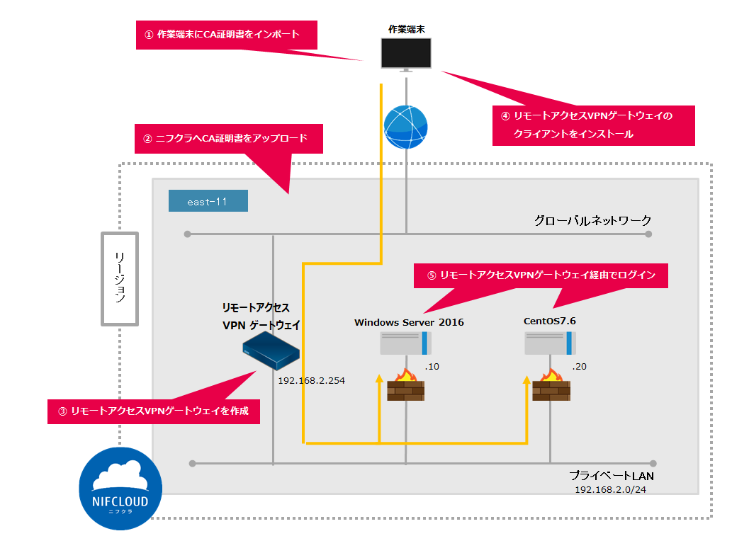 以下の流れでVPN接続環境をセットアップします。
