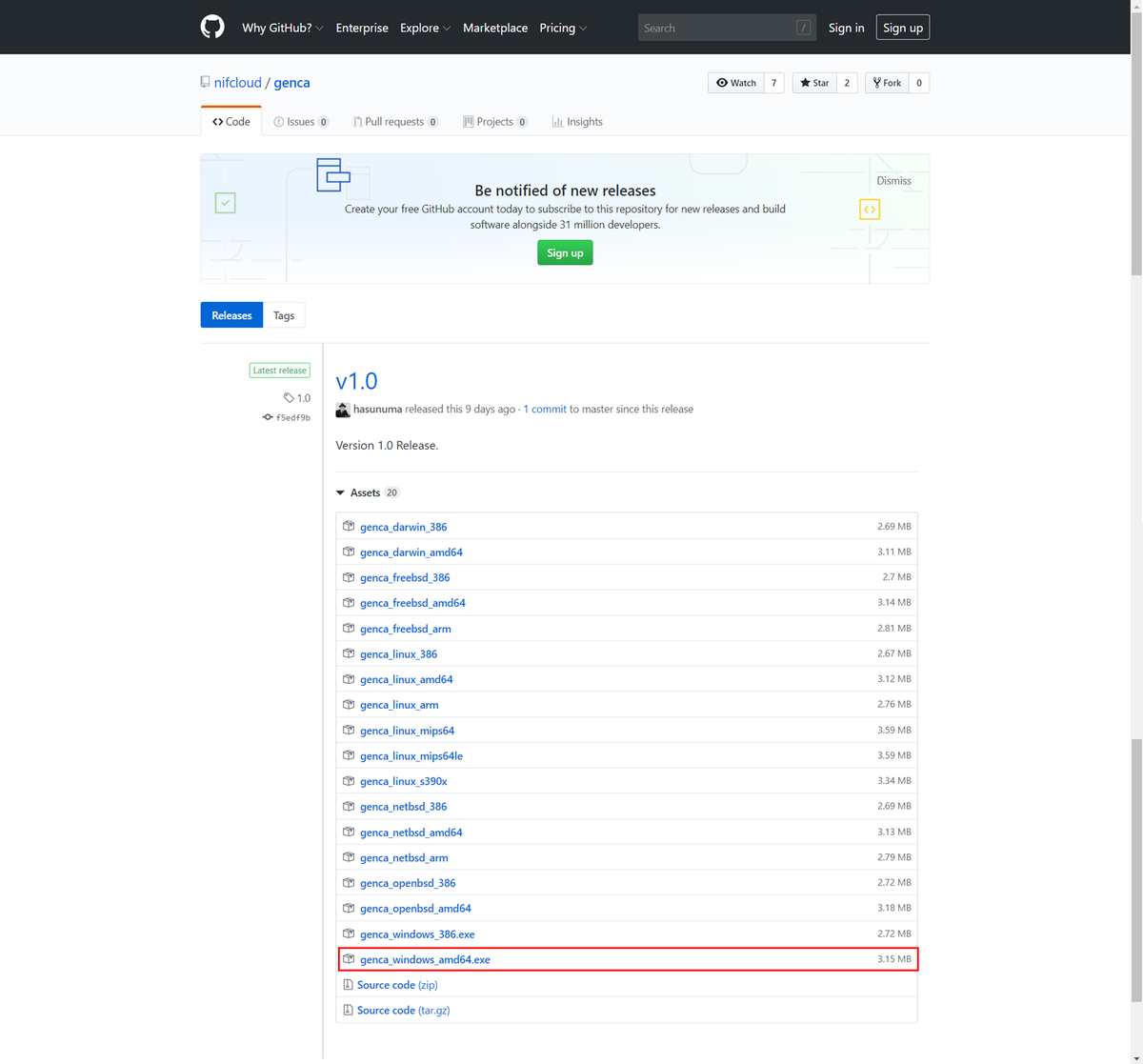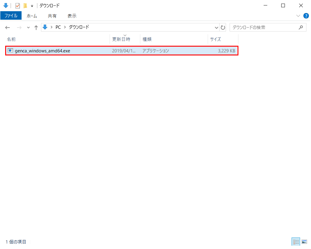 ダウンロードした「genca_windows_amd64.exe」を実行します。