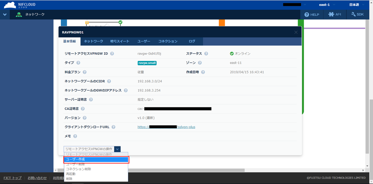 2019年04月10日にクライアント環境からFJcloud-VにVPN接続できる新機能リモートアクセスVPNゲートウェイがリリースされました。