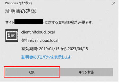 「client.nifcloud.local.pfx」で作成したCA証明書を選択し「OK」をクリックします。
