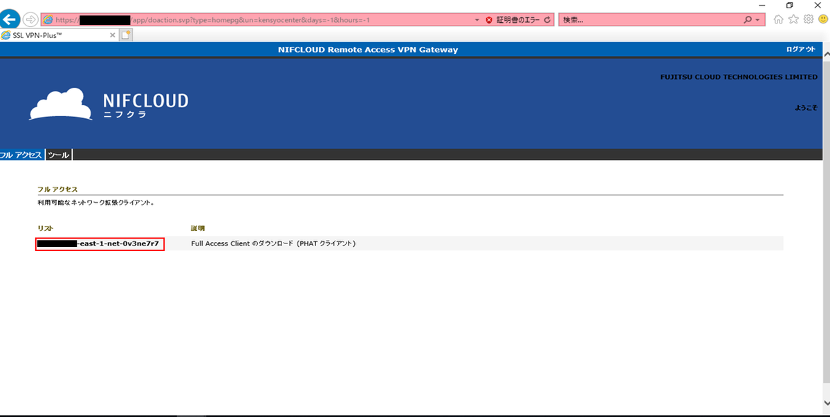 リモートアクセスVPNゲートウェイのクライアントソフトダウンロード