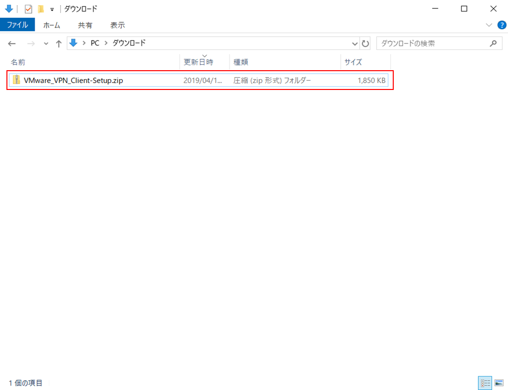 「VMware_VPN_Client-Setup.zip」がダウンロードできたことを確認します。