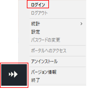 作業端末のタスクトレイから「SSL VPN-Plus Client」 -「右クリック」-「ログイン」を選択します。