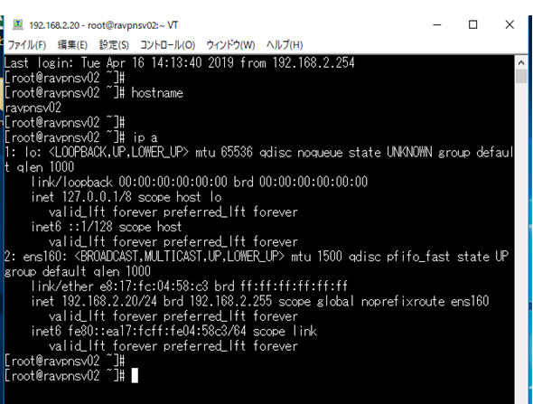 対象サーバーにログイン後、「ip a」コマンドで確認します。