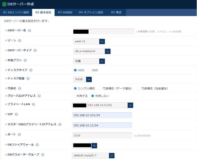 | DBサーバータイプ | db.e-medium4 | db.e-medium4 | 任意のタイプを指定 |