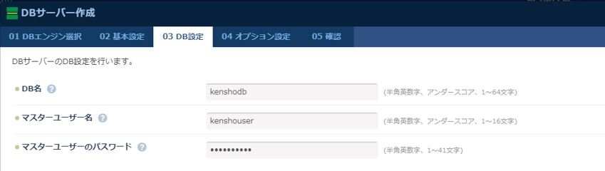 | DB名 | kenshodb | kenshodb | ソースDB・レプリカDBで同じ設定とする |