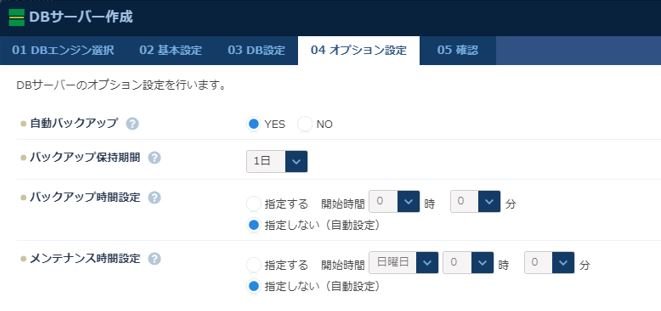 | メンテナンス時間設定 | 指定しない(自動設定) | 指定しない(自動設定) | 任意設定 |