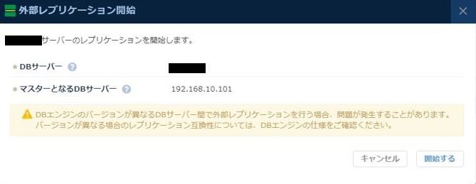 【開始する】をクリックすると外部レプリケーションを開始します。