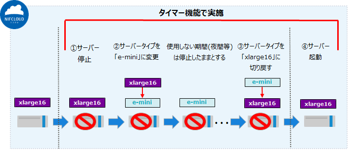 タイマーには月額利用料がかかりますが、元々のサーバータイプが高スペックである場合や、サーバー台数と停止時間が大きい条件下では、コストメリットが高くなります。