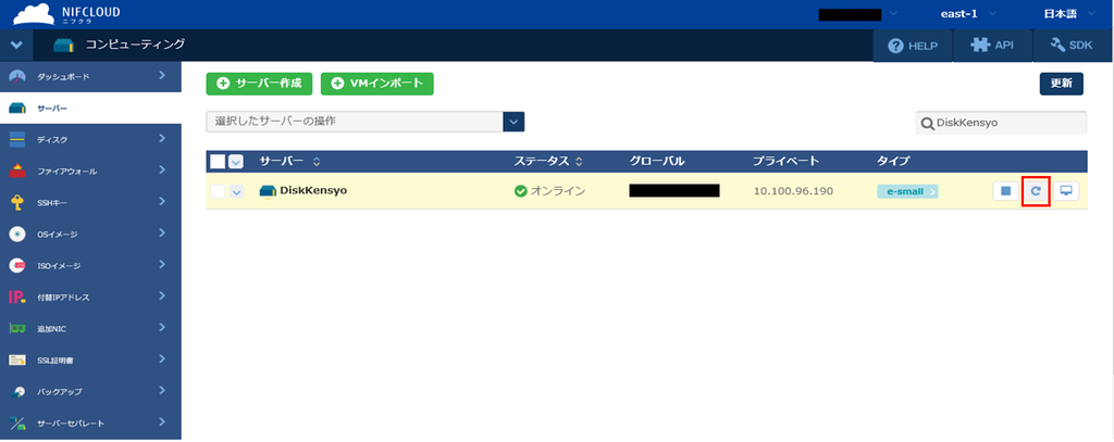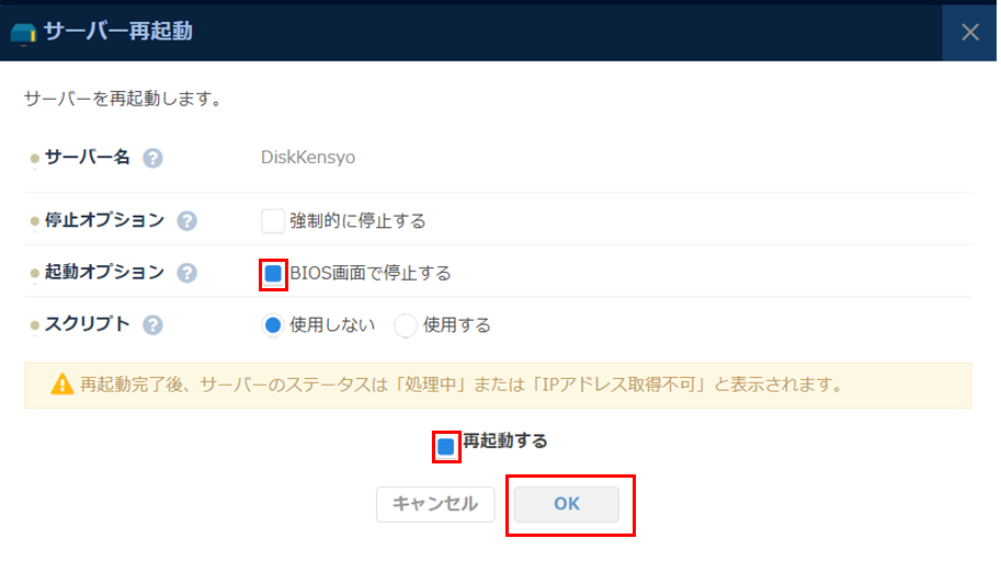 「サーバー再起動」ボタンをクリックします。