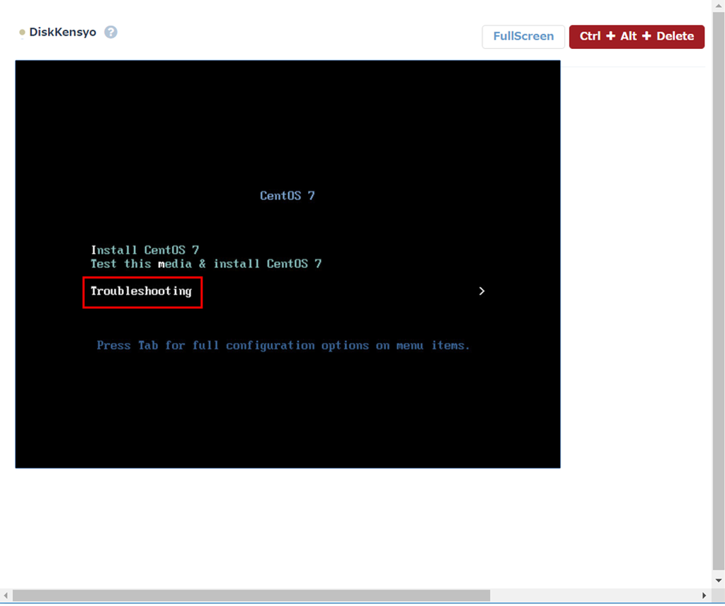 「Troubleshooting」→「Boot from local drive」を選択し、システムディスク(ローカルディスク)から起動させます。
