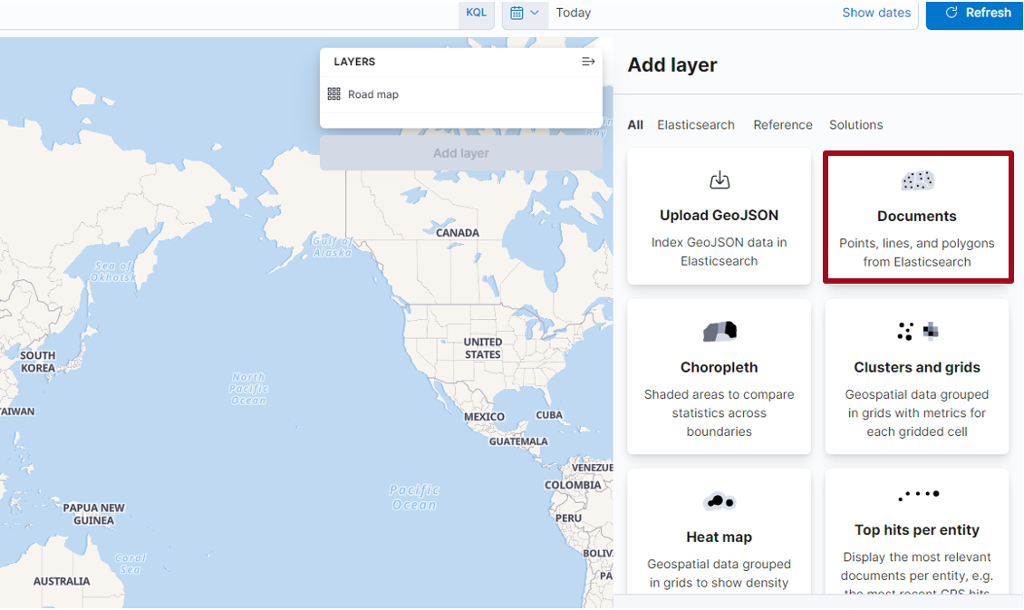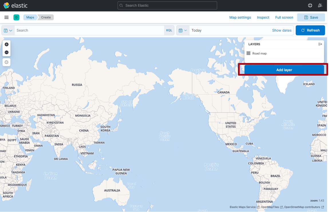 初期状態では地図が表示されるだけなので、[Add layer] を押下して、読み込ませるデータを指定します。