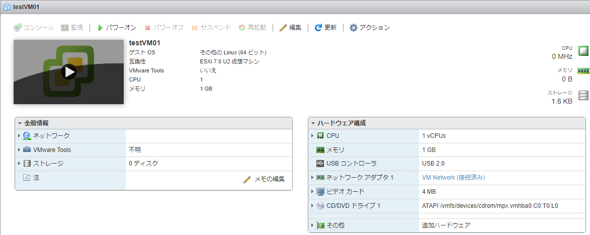 - 3. ESXi上でVMDKファイルを使用して、VMインポートの条件に合う設定で仮想マシンを起動します