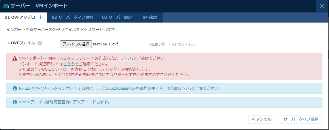 以下の画面で「testVM01.ovf」を選択します。