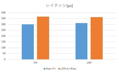 レイテンシについては50~70μs程度 IPSec VTI の方が小さい結果となっています。
