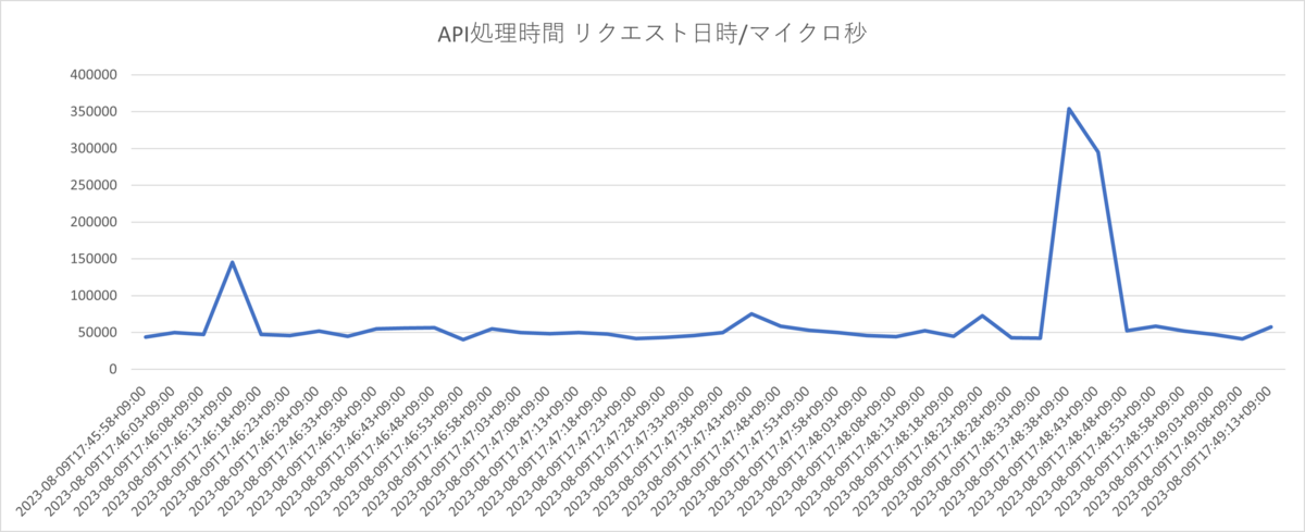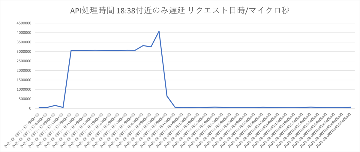 可視化するとこんな感じです。意図的に遅延させた39分付近だけおかしくなっていることが一目でわかります。