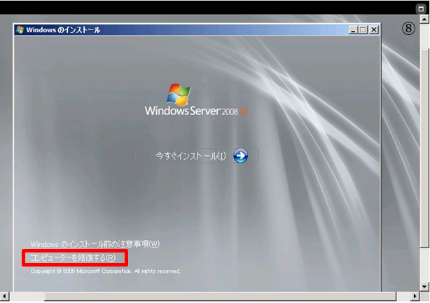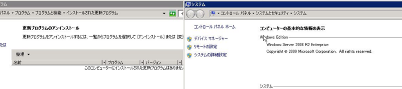 - Windows Server 2008R2 SP1適用前の状態に戻っていることを確認する。