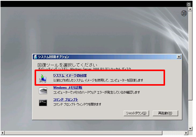 システムリストア後に、正常に処理が完了していることを確認するための作業を行います。作業としてはOSに「Windows Server 2008 R2 SP1」を適用します。リストア後、SP1適用前の状態に戻っていることを確認することでリストアの正常性を確認します。