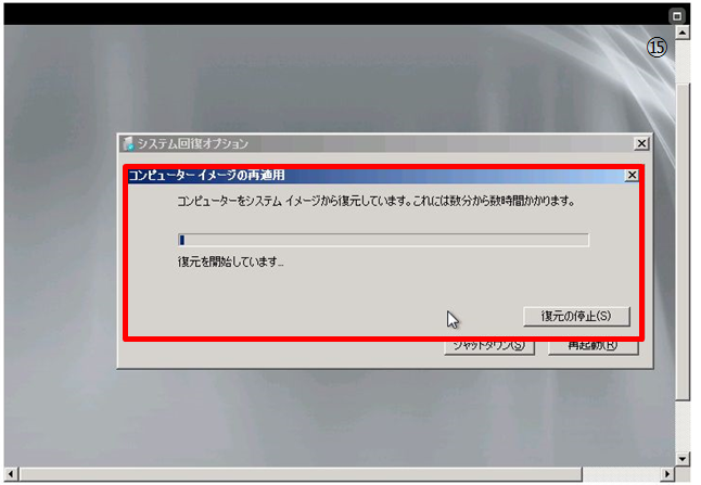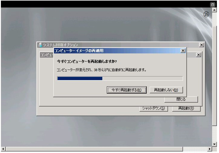 16. コンピューターイメージの再適用完了後、自動で再起動が行われる。