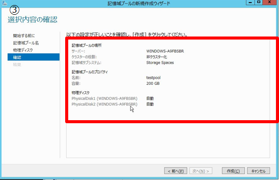 - 3. 記憶域プールを、手順2.で追加した増設ディスクを使用し作成