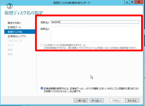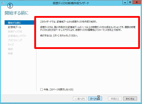 3-3. 「記憶域プールの新規作成ウィザード」画面が開くので画面に従い設定を行う。
