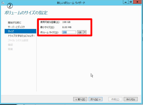8-5 拡張後のボリュームのサイズを指定する。