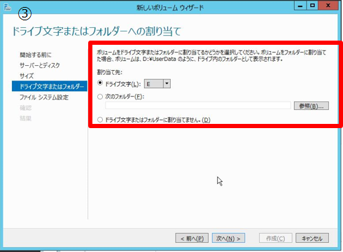 - 3. ドライブ文字の割り当てを行う。