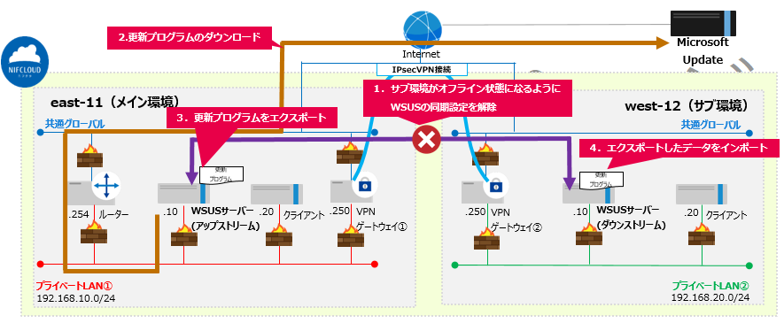 今回は、ニフクラの拠点間VPNゲートウェイという機能を使用してリージョンをまたいだWSUSの階層化(チェーン化)構成を検証してみました。