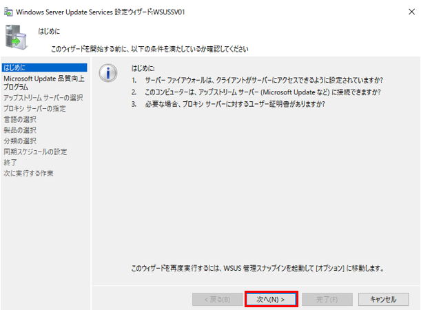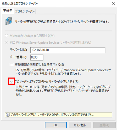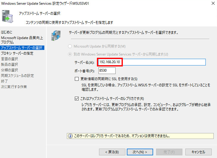 前述と同じ手順でWSUSSV01をアップストリームサーバーに変更します。