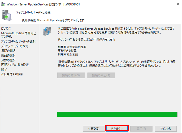 前述と同じ手順でWSUSのインストールとダウンストリームサーバーとしての設定をします。