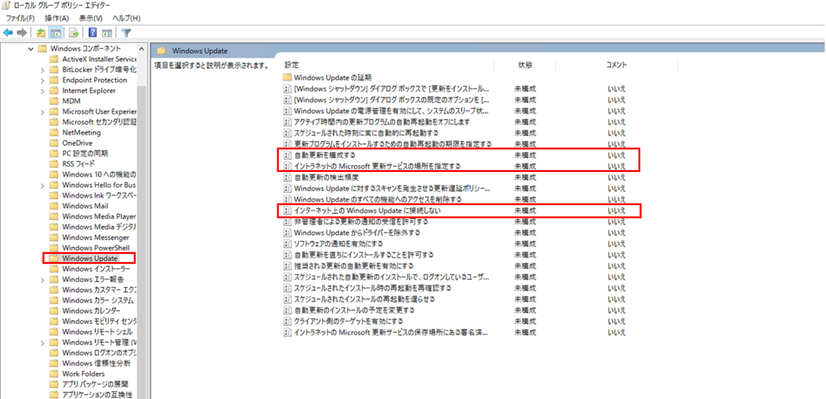 ※前提として、エクスポート対象の更新プログラムをインストール済みであること。