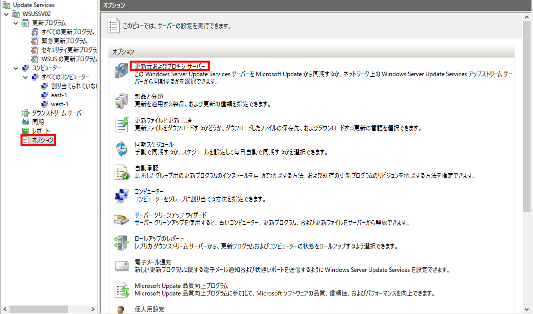 ■ダウンストリームサーバーへ変更(WSUSSV02)