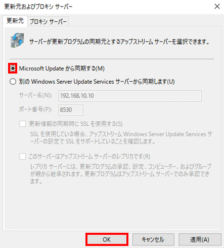 ※本サーバーは直接Microsoft Updateと同期しますが、グローバルIPを付与していないため、ルーターの「Webプロキシ」機能で通信するように設定します。