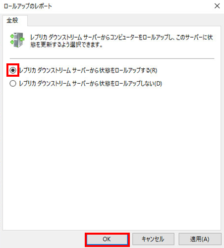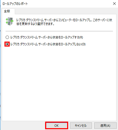 ⑥「レプリカダウンストリームサーバーから状態をロールアップしない」を選択し、「OK」をクリックします。