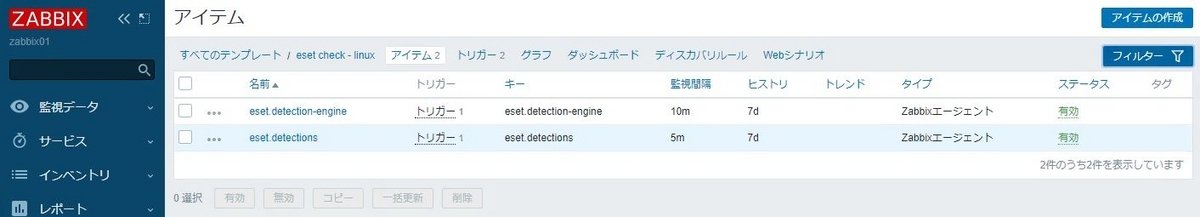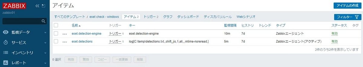 ESETをインストールしたサーバーにはそれぞれZabbixエージェントをインストールしてZabbixの監視対象とします。