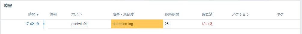 任意の場所でeicarテストファイルを作成してしばらく待つと、以下のようにZabbixのトリガーで検知されます。