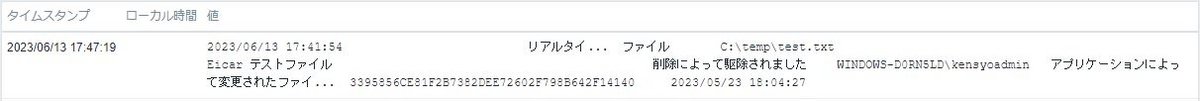 eicarテストファイルを利用してマルウェアを検出した際の動作を確認してみます。