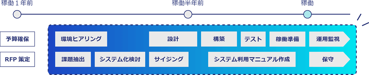 移行については、機能の細分化から優先順位付けした最適な段階的移行プランを提案します。また、移行後も運用設計や運用開始後のセキュリティ対応含めた保守なども得意とします。