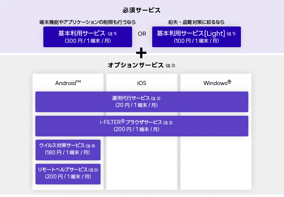 基本利用サービス[必須]およびオプションサービス[任意]がございます。